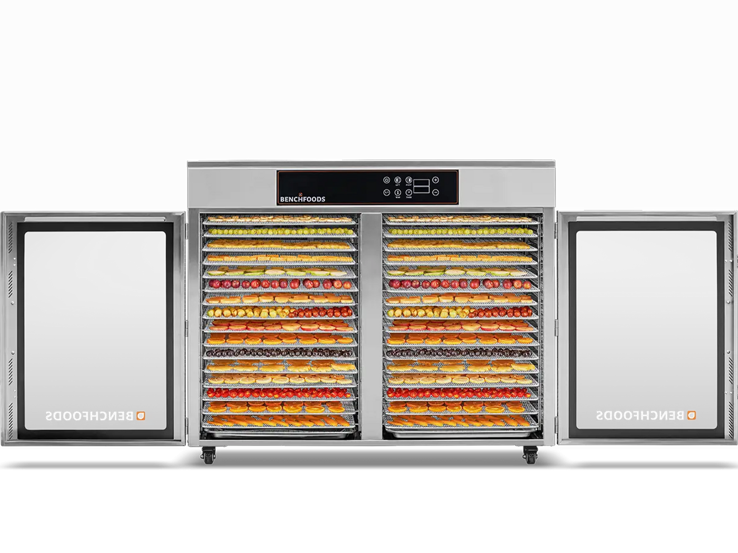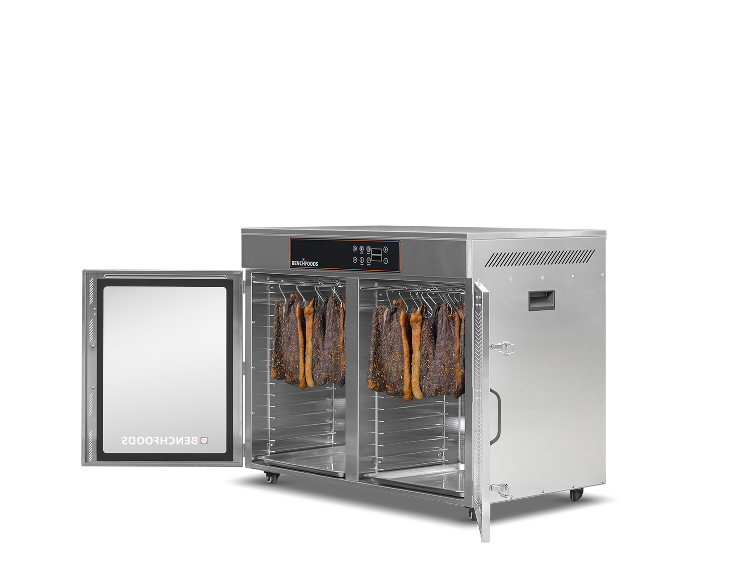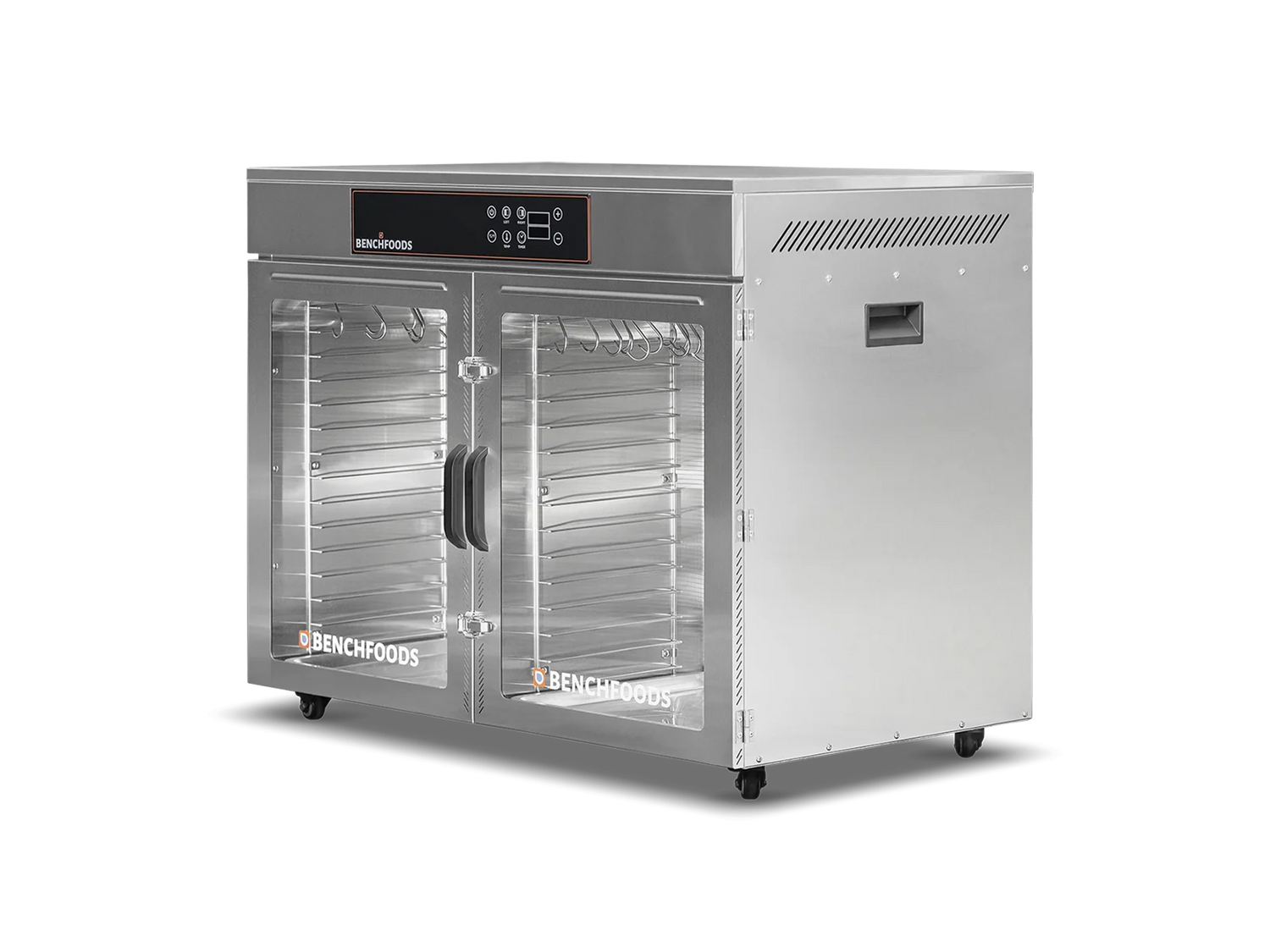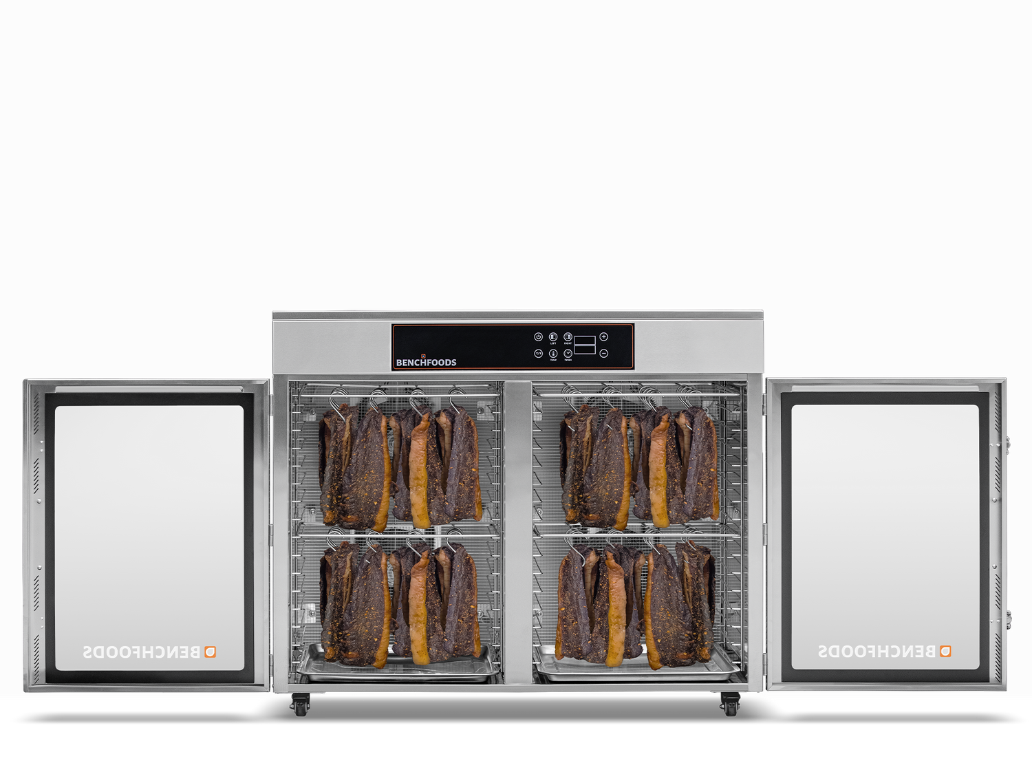 Now UL & NSF Certified, maximize your commercial dehydration capabilities with our 32-tray side-by-side stainless steel dehydrator, now enhanced with a biltong bundle for added versatility.