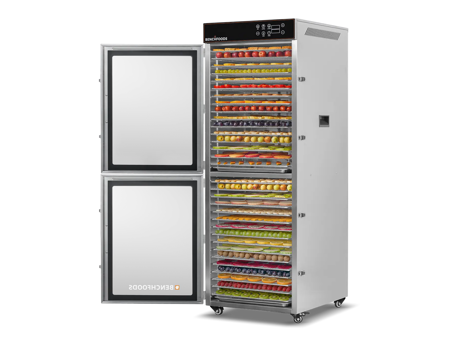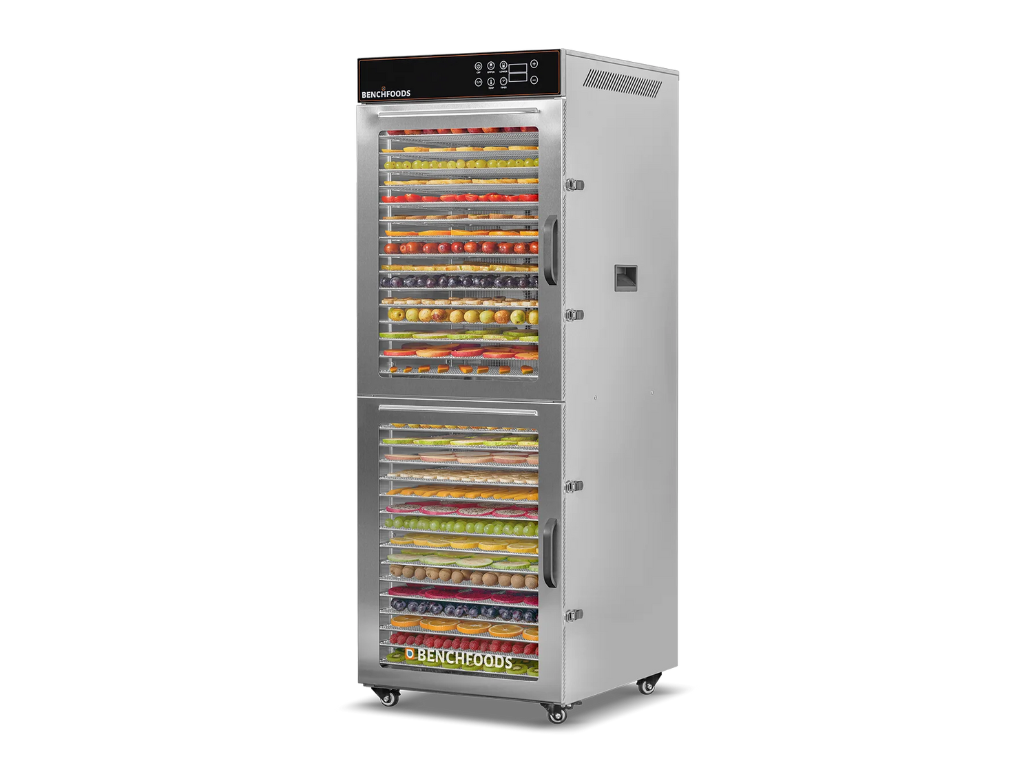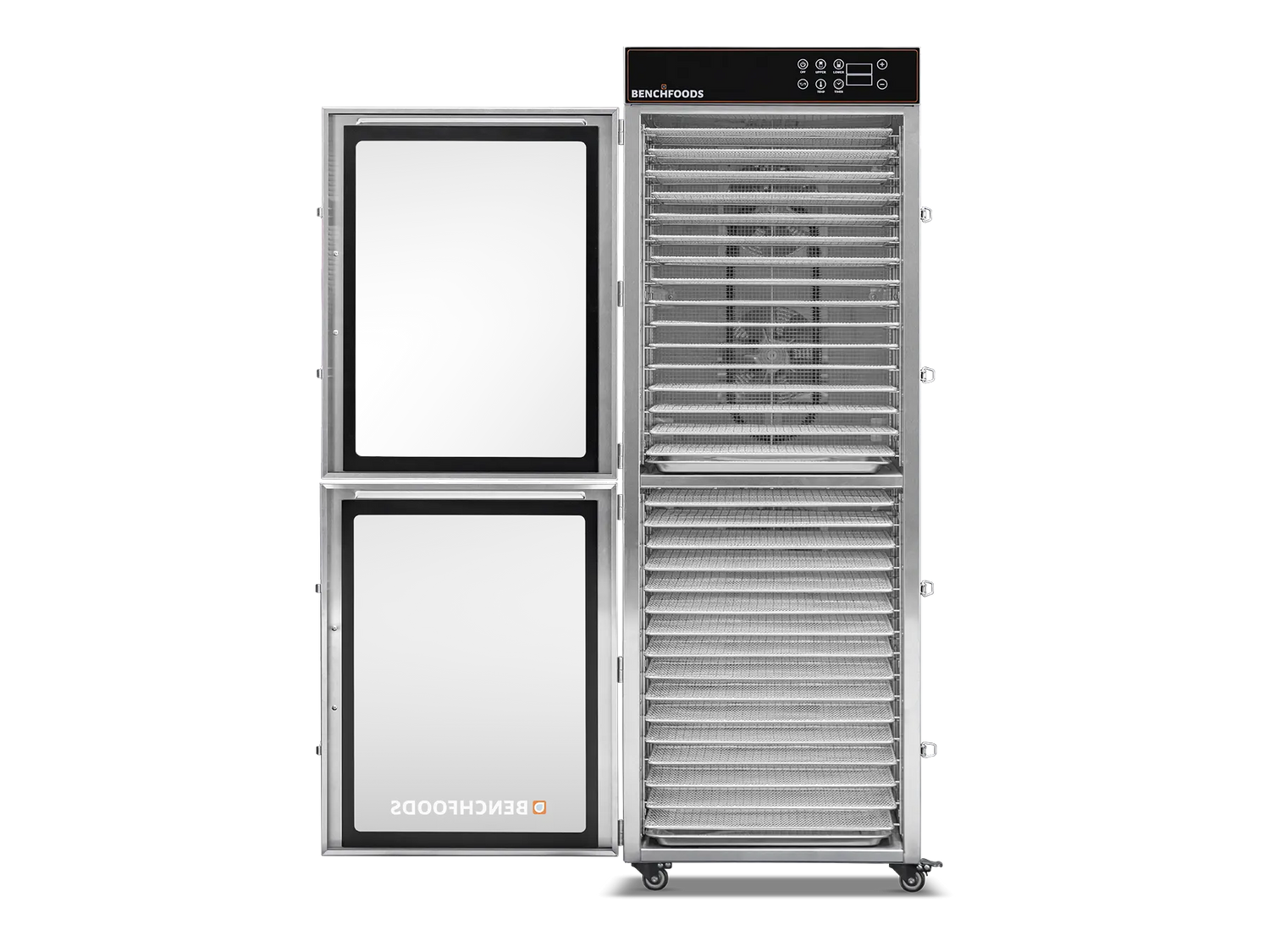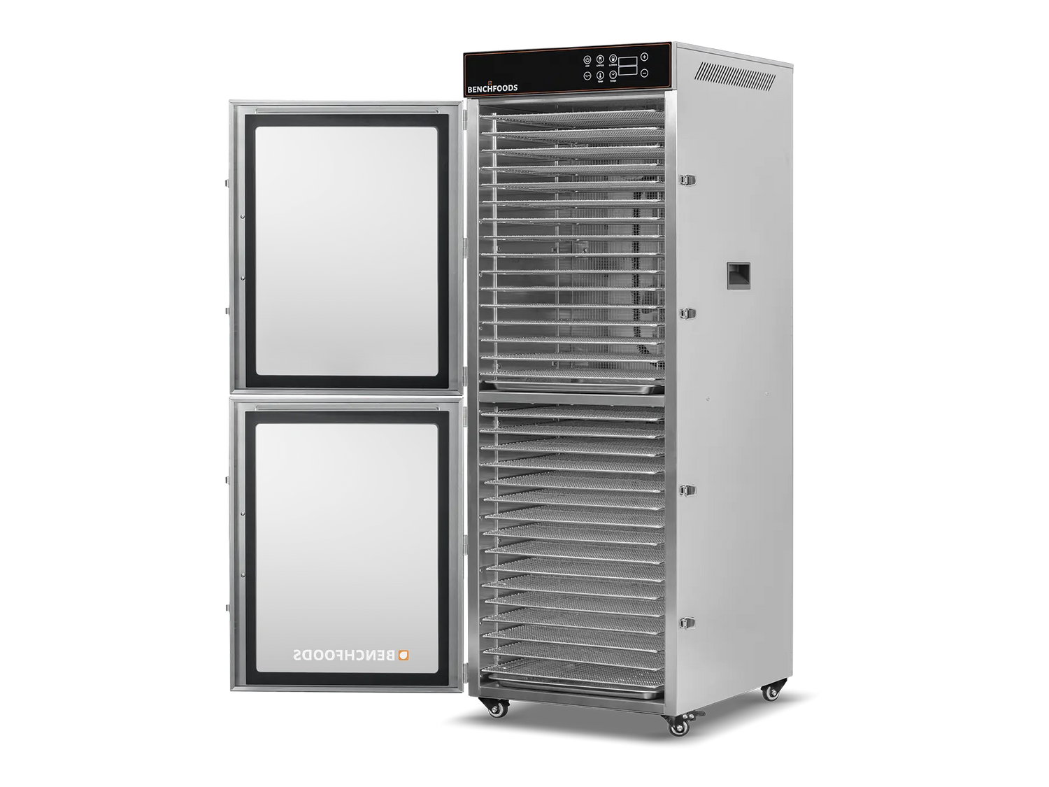 Double-walled stainless steel allows for better energy efficiency by keeping the heat where it belongs, inside the drying chamber. This feature also keeps the sides of the machine cool to touch.