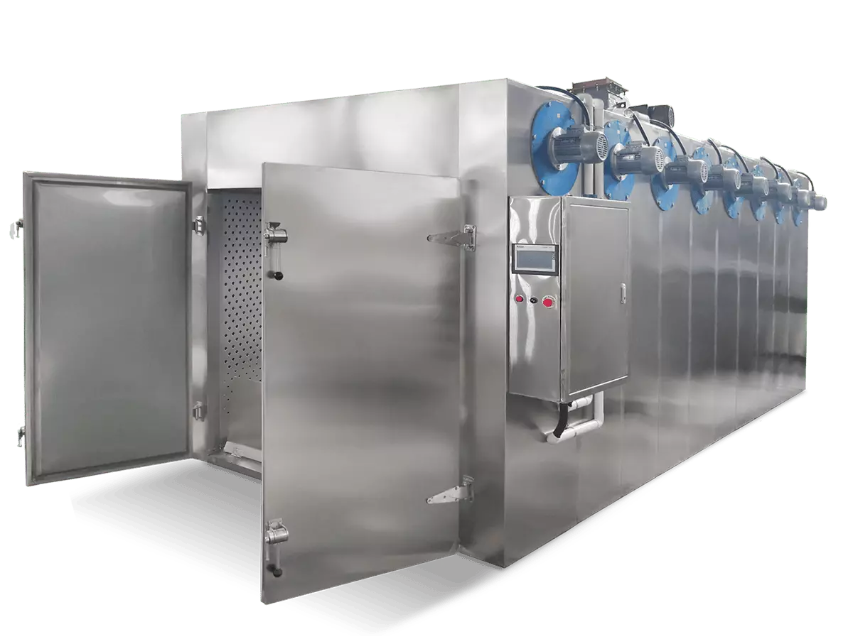 Our Industrial Dehydrators feature a Completion Cooling Cycle, a vital part of any production process. This cycle ensures that your product is fully cooled to a safe temperature before being handled or packaged. This is important for worker safety, as stainless steel trolleys and trays can hold heat for quite some time. Additionally, bringing the core temperature of your product down fully prior to packaging prevents condensation or moisture from building up inside your packaging during storage, which can affect your product’s quality and shelf life. With our Completion Cooling Cycle, you can ensure the safety and quality of your end product while minimizing waste and maximizing efficiency.