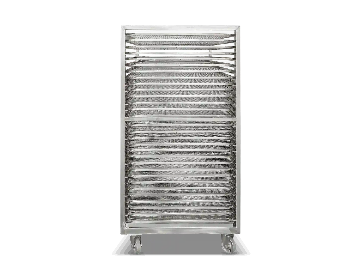 Industrial units include 30 trays per trolley by default. Units can be modified to fit more trays per trolley dependent on the thickness of your product.