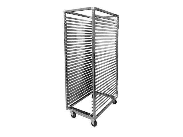 This trolley is designed for our 28-CUD model and allows the 50x85cm trays to be prepped ahead of time or used as a cooling rack after a batch is completed. Trolley comes flat packed for assembly. This item is a trolley only. No trays included.